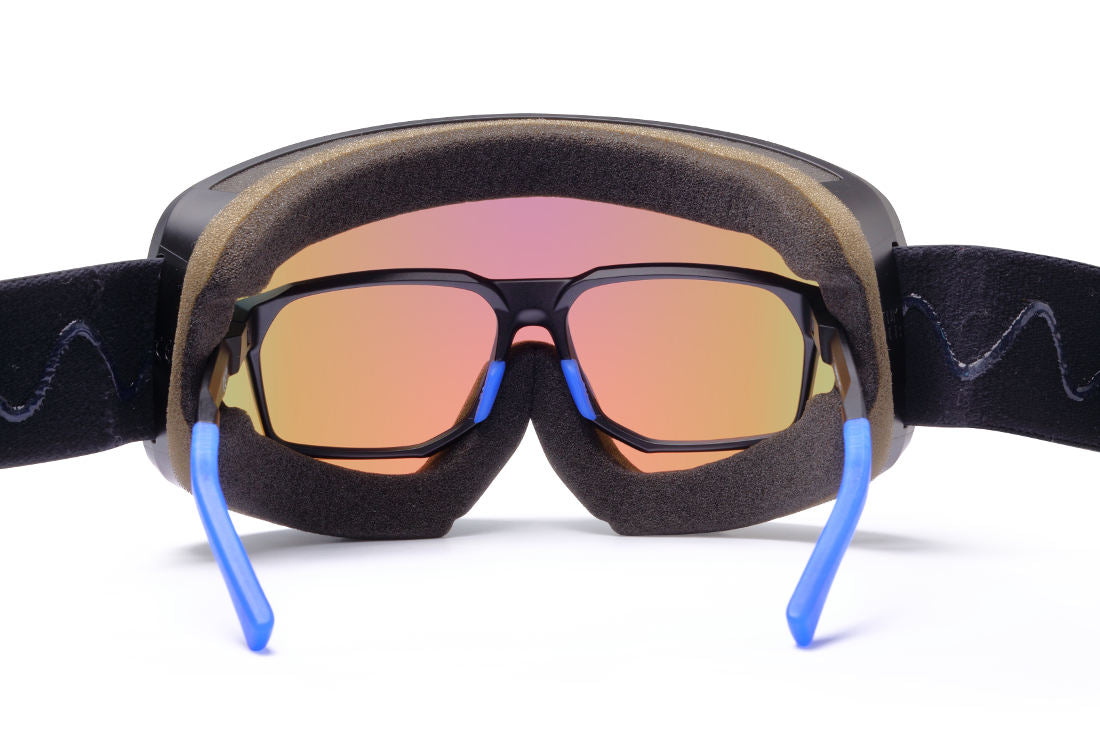 La SELF è stata progettata per chi porta occhiali da vista, con un’ampia cavità interna che consente di indossarla comodamente sopra montature di dimensioni medie (fino a circa 11,5 cm di larghezza x 3,5 cm di altezza).
